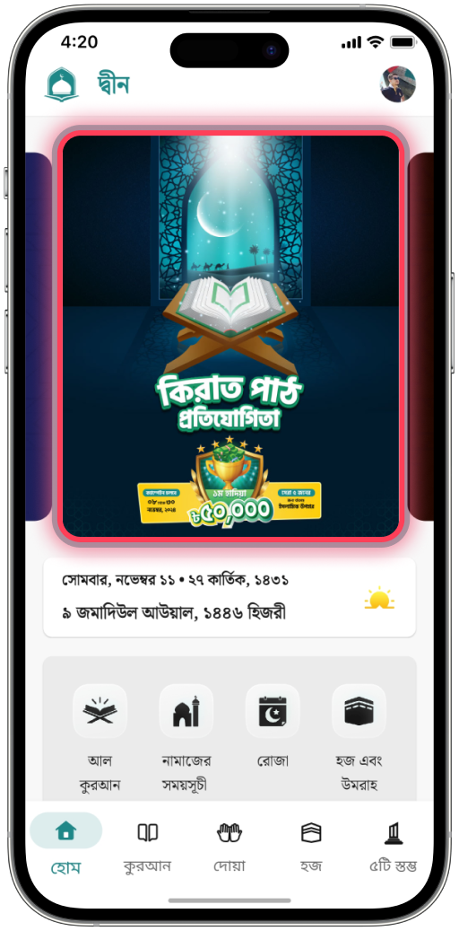 দ্বীন অ্যাপের প্রাপ্ত রিয়্যাকশন এবং বিচারকদের যাচাইয়ের ভিত্তিতে সেরা ৫ প্রতিযোগির সরাসরি অংশগ্রহণ এবং চূড়ান্ত ফলাফল প্রকাশ