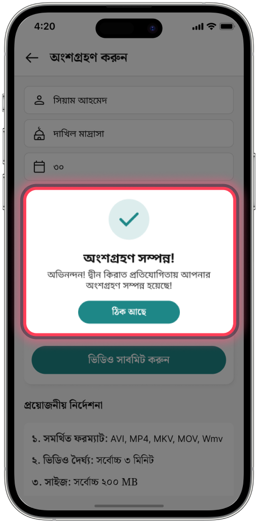 অংশগ্রহণ সম্পন্ন
